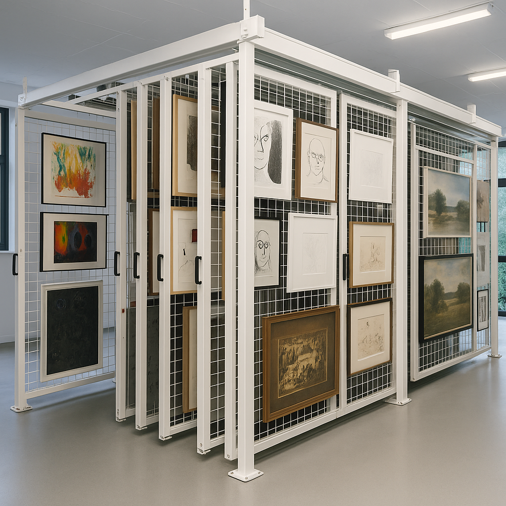 A empresa Escritório de Artes, também desenvolve mobiliário para reservas técnicas de colecionadores, museus e galerias, criando soluções sob medida como traineis, mapotecas, estantes e outros suportes específicos para acondicionamento e preservação de acervos, sempre com foco em segurança, durabilidade e funcionalidade.